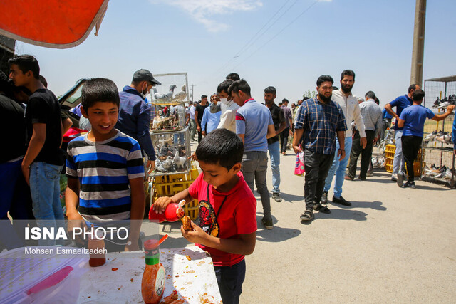 پیرمردی که بدون ماسک و دستکش بر روی زمین خاکی نشسته و پرندگان خود را در صندق عقب ماشین برای فروش گذاشته است، می‌گوید: در داخل بازار سرویس و امکانات بهداشتی وجود داشت، اما متاسفانه بیرون از بازار هیچ امکاناتی نداریم و احتمال مبتلا شدن ما به بیماری کرونا بسیار زیاد است.