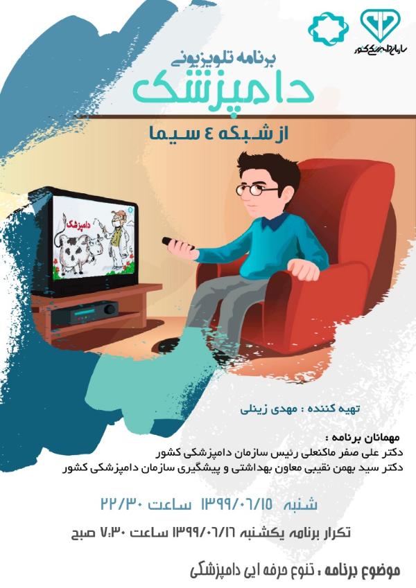 برنامه هفتگی تلویزیونی «دامپزشک» به تهیه کنندگی مهدی زینلی از امروز شنبه از شبکه 4 سیما آغاز به پخش میکند.