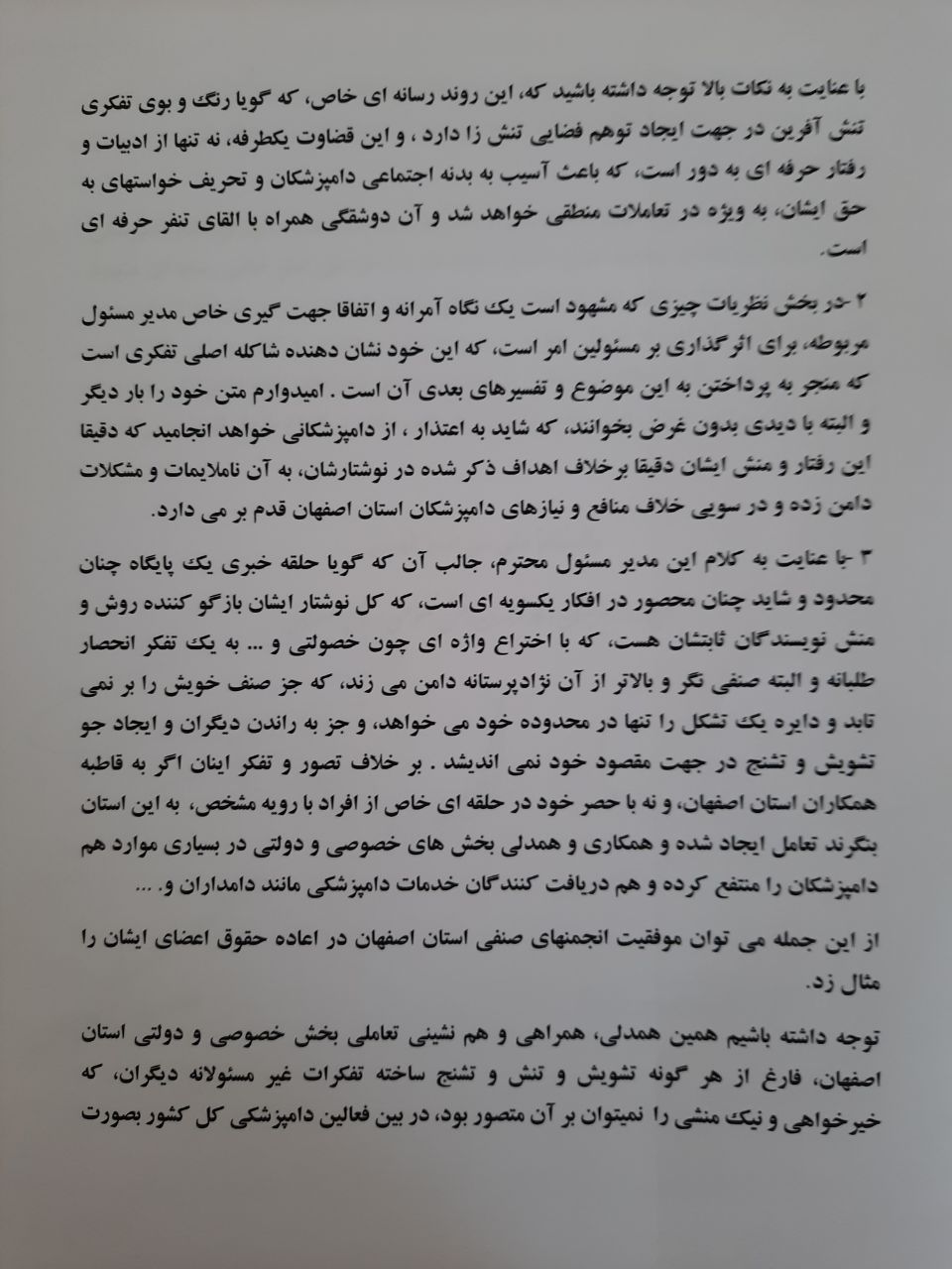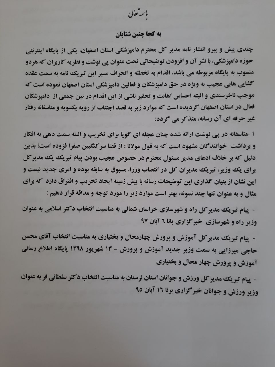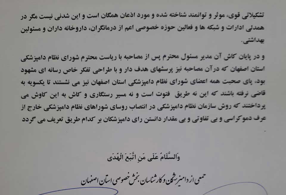 جمعی از دامپزشکان بخش خصوصی استان اصفهان طی نامه ای گلایه های خود را از برخی مطالب منتشرشده در فضای مجازی مطرح کردند