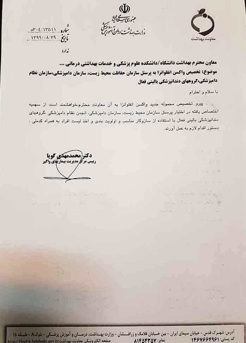 مرکز مدیریت بیماری‌های واگیر وزارت بهداشت با تخصیص واکسن آنفلوآنزا به شاغلین بخش خصوصی دامپزشکی موافقت کرد