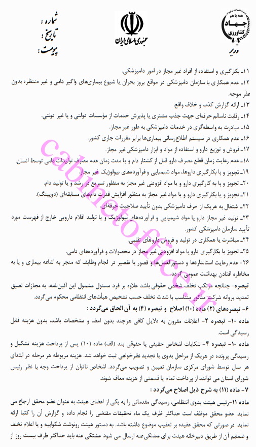 پیشنهاد اصلاح آیین‌نامه رسیدگی به تخلفات صنفی شاغلان دامپزشکی