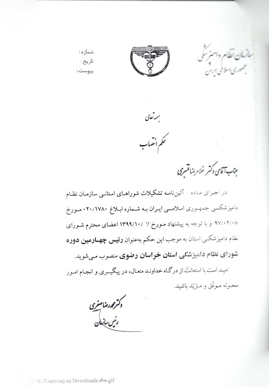 ۶-عضو و دبیر شورای نظام دامپزشکی استان خراسان رضوی