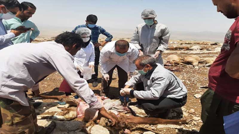 به گزارش فاخته، صبح جمعه یازدهم تیرماه جاری 184 رأس گوسفند از یک گله 570 رأسی بنا به اظهارات چوپان ها بعد از خوردن آب تانکری که از چشمه روستا تهیه شده بود، در کمتر از پنج دقیقه زمین گیر و در اطراف آبشخور تلف شدند(اینجا). پس از دریافت گزارش تلفات از سامانه ارتباطی 1512، دکتر منا مؤمن معاون شبکه دامپزشکی شهرستان در محل حضور یافت و اقدامات اولیه شامل شرح حال گرفتن و کالبدگشایی دام را انجام داد. در ادامه نیز دکتر حمید رمضانی مدیرکل دامپزشکی استان به همراه دکتر مهیار شریفان مسئول آزمایشگاه مرکزی این اداره کل با حضور در محل، شخصا به بررسی تلفات، کالبدگشایی و نمونه گیری برای تشخیص دقیق علت تلفات ناگهانی پرداخت.