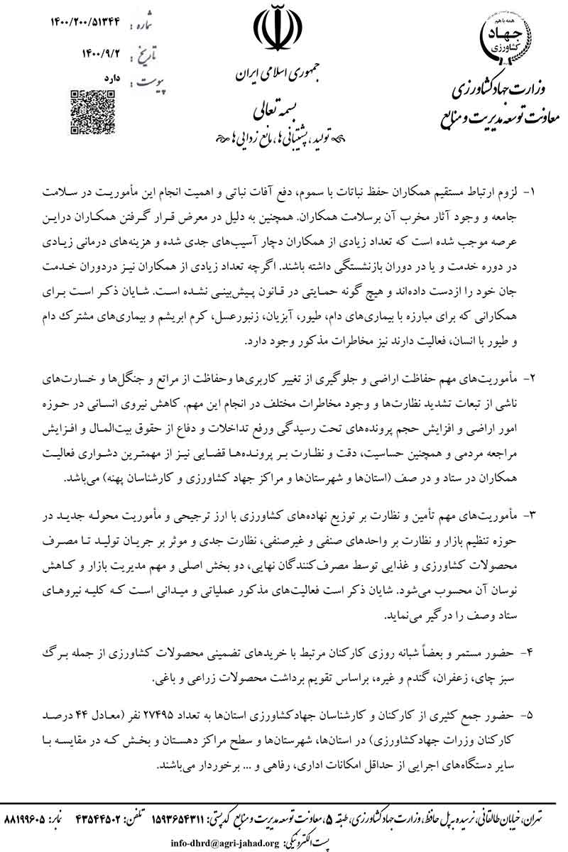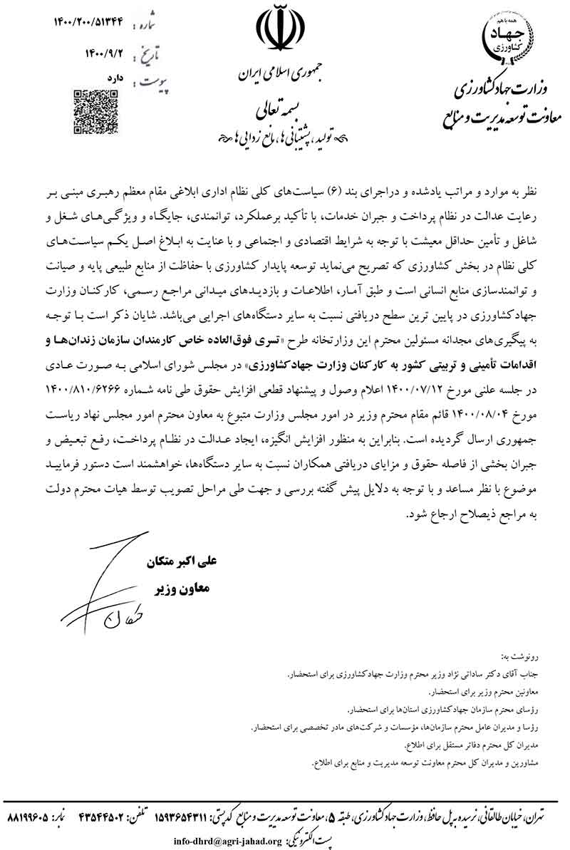 معاون وزیر جهادکشاورزی طی نامه ای 5 صفحه ای، 15 دلیل برای دریافت تسری فوق العاده خاص به مجلس شورای اسلامی اعلام کرد.