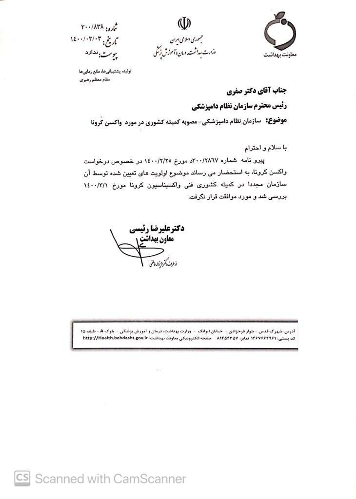 معاون بهداشتی وزارت بهداشت با صدور نامه ای به رییس سازمان نظام دامپزشکی از مخالفت اعضای کمیته فنی کشوری واکسیناسیون کرونا با در اولویت قرارگرفتن دامپزشکان و اعضای خانواده نظام دامپزشکی در خصوص واکسیناسیون کووید 19 خبر داد.